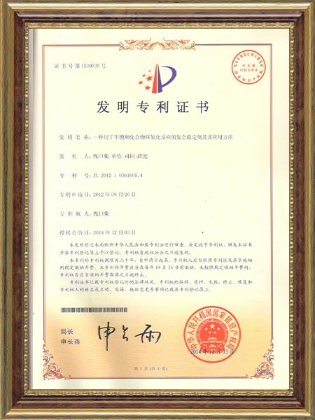 一种用于不饱和化合物环氧化反应的复合稳定剂及其应用方法发明专利证书